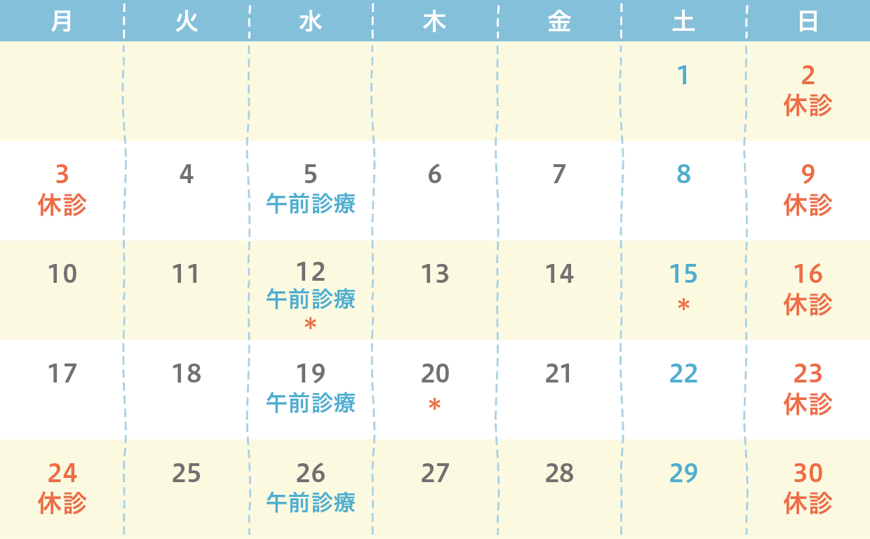 11月15日(土)は当院の都合により、6時閉院とさせていただきます。それに伴い、ウェブ予約受付は5時まで、直接のご来院での受付は5時半までとさせていただきます。